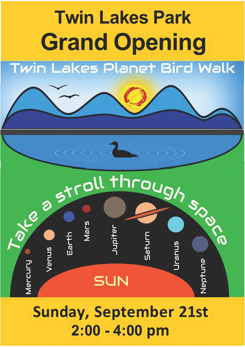 Participants can “take a stroll through space” with a walk that features the planets of our solar system, while also enjoying the rich birdlife of Twin Lakes. This unique event combines science, nature, and recreation—perfect for families, students, and anyone curious about the natural world.