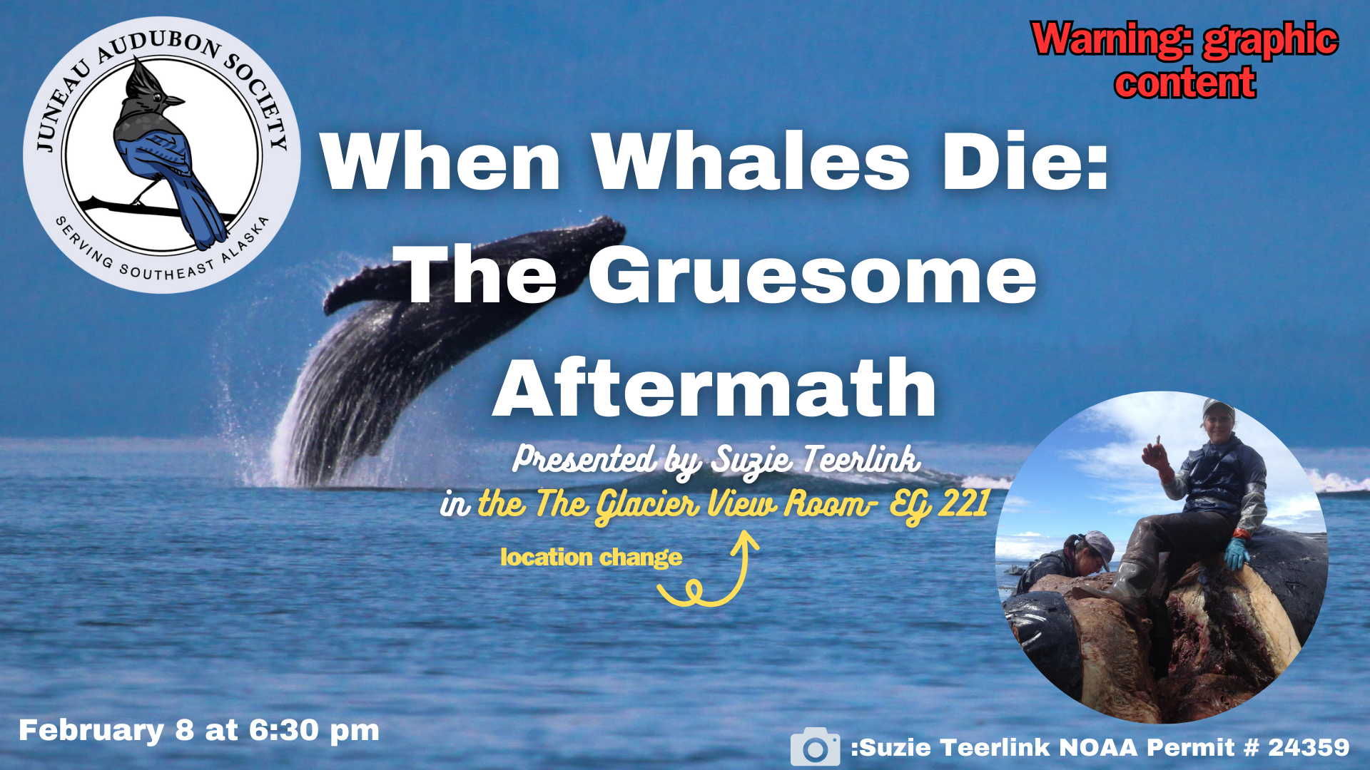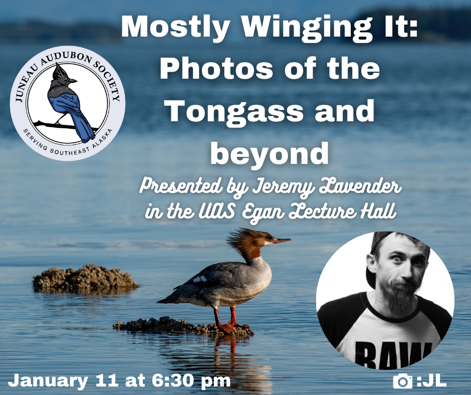 Come join us for an informative evening with Marine Mammal Specialist Suzie Teerlink! This month's program will be held Thursday, February 8th at UAS! Please note the room change to the Glacier View Room Egan 221. We will be streaming the program live on our Facebook page: https://www.facebook.com/events/266792726432410/?active_tab=about Juneau Audubon Society is an independent non-profit organization […]